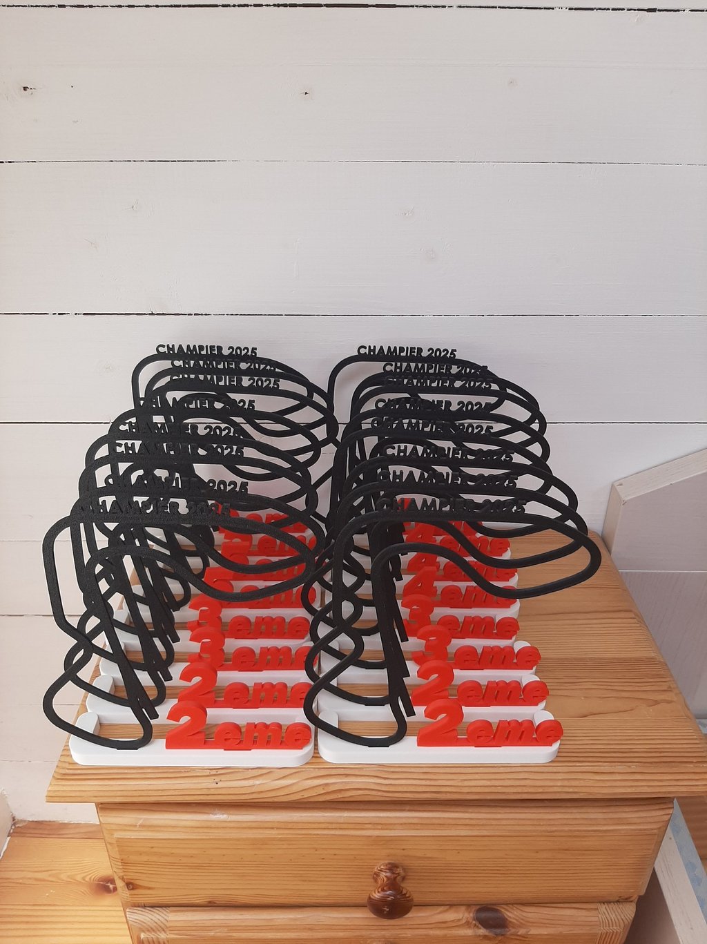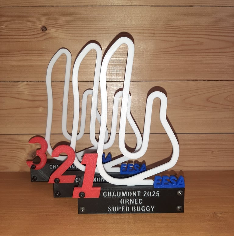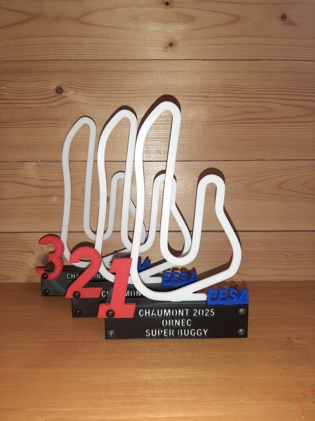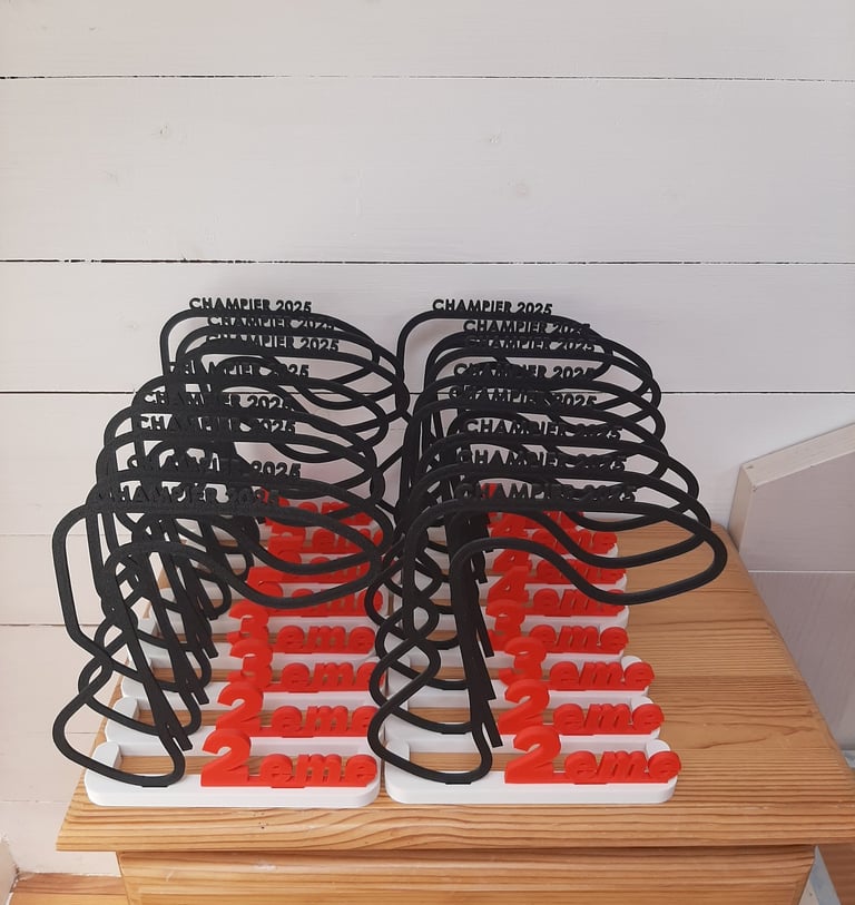 Trophées réalisées pour épreuves du challenge de sprintcar UFOLEP 2025. 20 trophées ont été fabriqués pour cette épreuve.