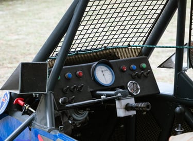 Conception et fabrication d’un tableau de bord 100 % sur mesure pour buggy, avec intégration des composants.