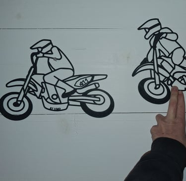Silhouettes murales réalisées sur mesure, à l'effigie de deux pilotes "supermotard"