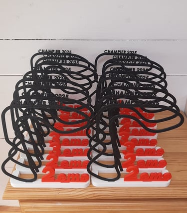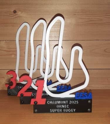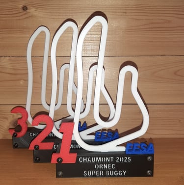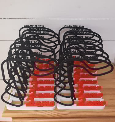 Trophées réalisées pour épreuves du challenge de sprintcar UFOLEP 2025. 20 trophées ont été fabriqués pour cette épreuve.